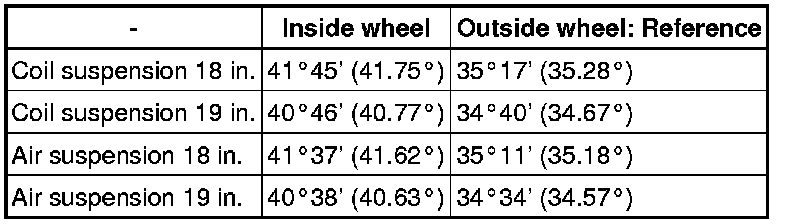 If the right and left inside wheel angles differ from the specified range, check the right and left rack end lengths.
