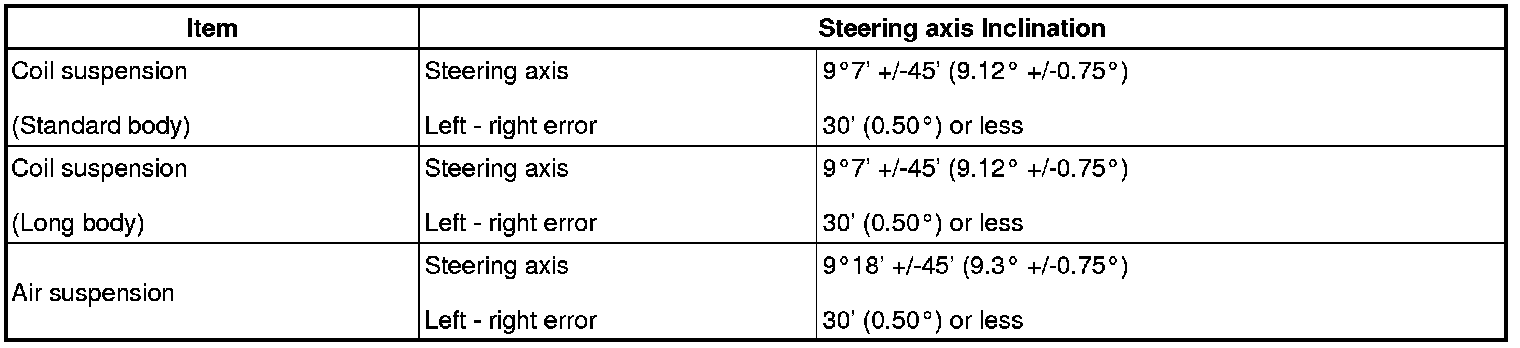 - The maximum tolerance of right and left difference for the camber is 30' or less.
