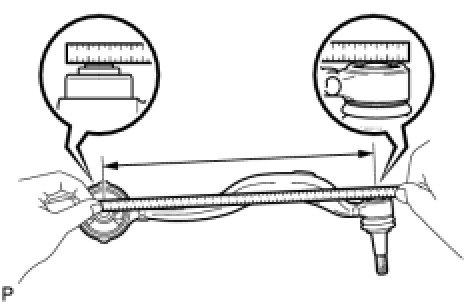 (2) Measure the dimension between the center of the front No. 1 suspension lower arm bush and the ball joint stud.