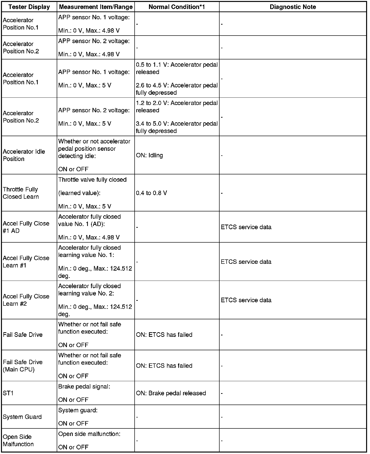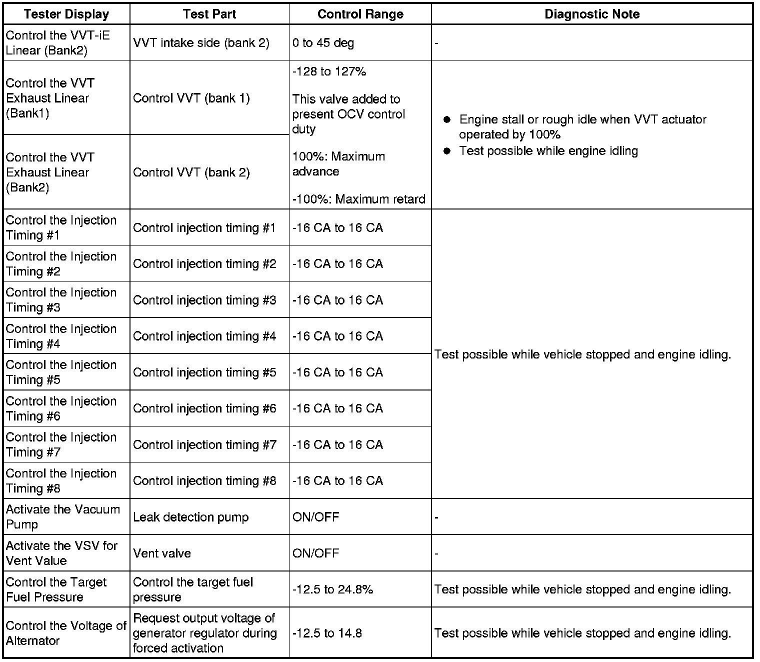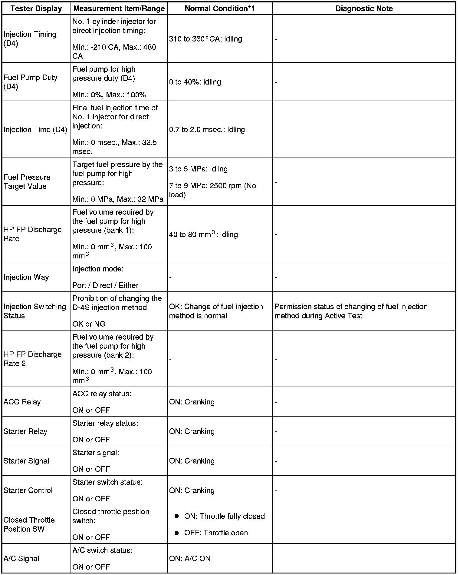 - *2: Data List values are only displayed when performing the following Active Tests: Control the VVT-iE Linear (Bank1), Control the VVT-iE Linear (Bank2), Control the Exhaust Linear (Bank1) and Control the Exhaust Linear (Bank2). For other Active Tests, the Data List value will be 0.