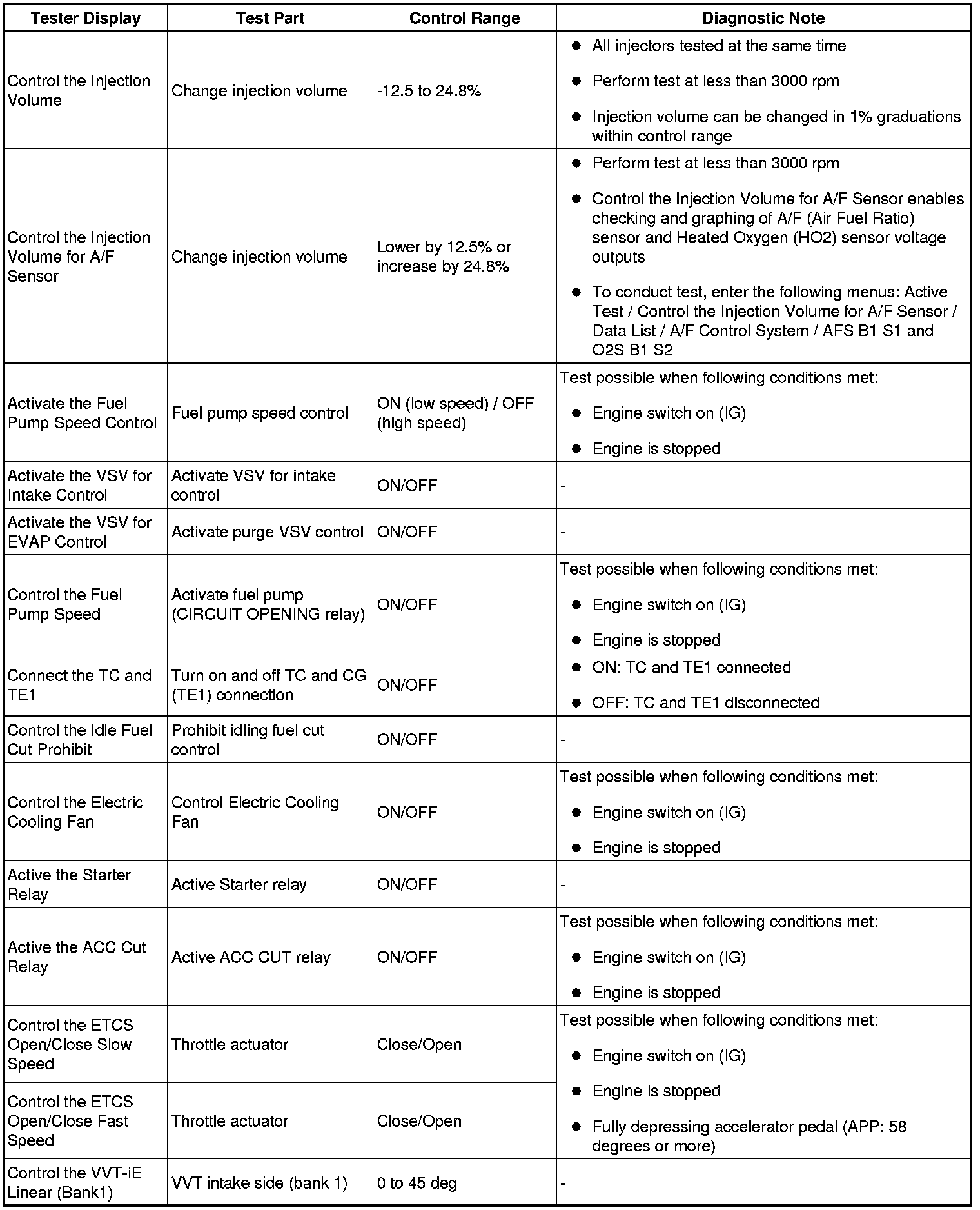 HINT: Using the Techstream to perform the Active Tests allows relays, VSVs and actuators and other items to be operated without removing any parts. This non-intrusive functional inspection can be very useful because intermittent operation may be discovered before parts or wiring is disturbed. Performing Active test early in troubleshooting is one way to save diagnostic time. Data List information can be displayed while performing Active Tests.