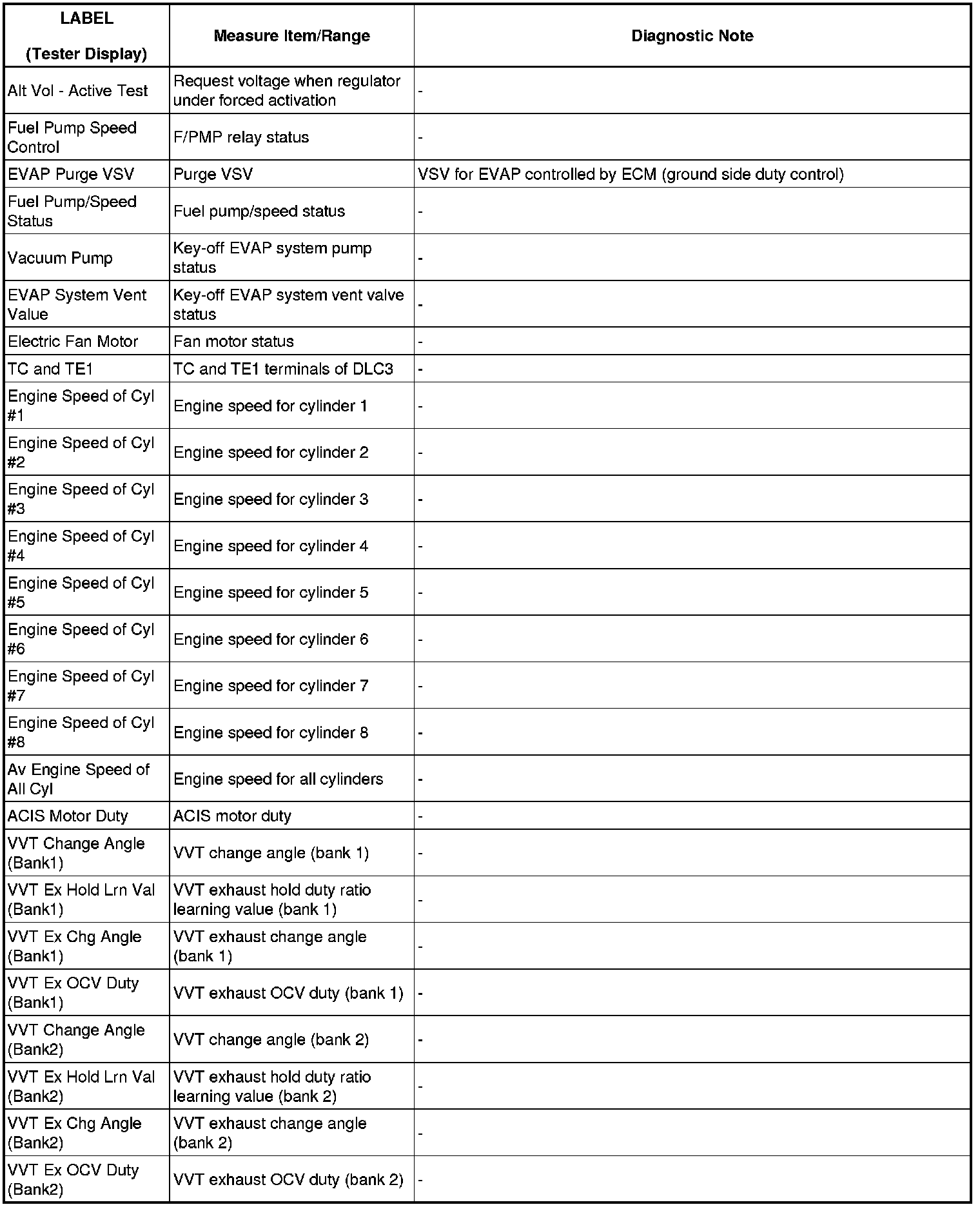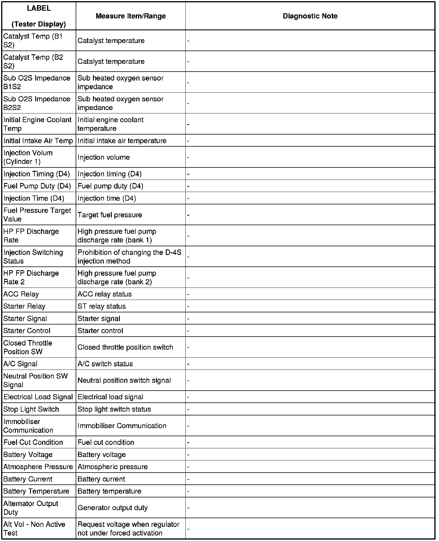 1UR-FSE ENGINE CONTROL SYSTEM: SFI SYSTEM: FREEZE FRAME DATA