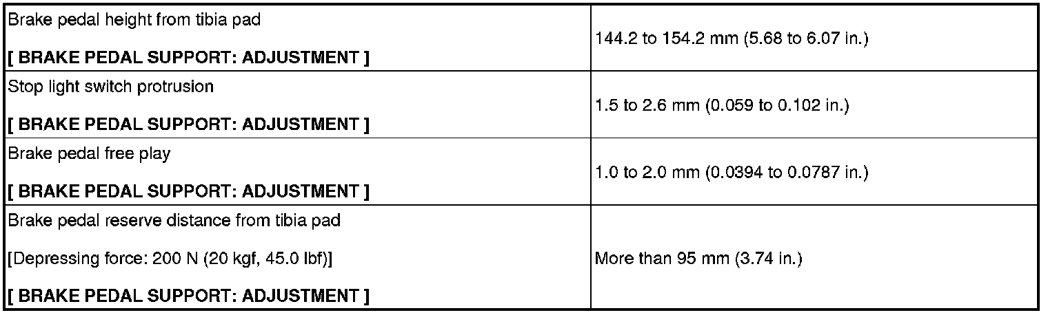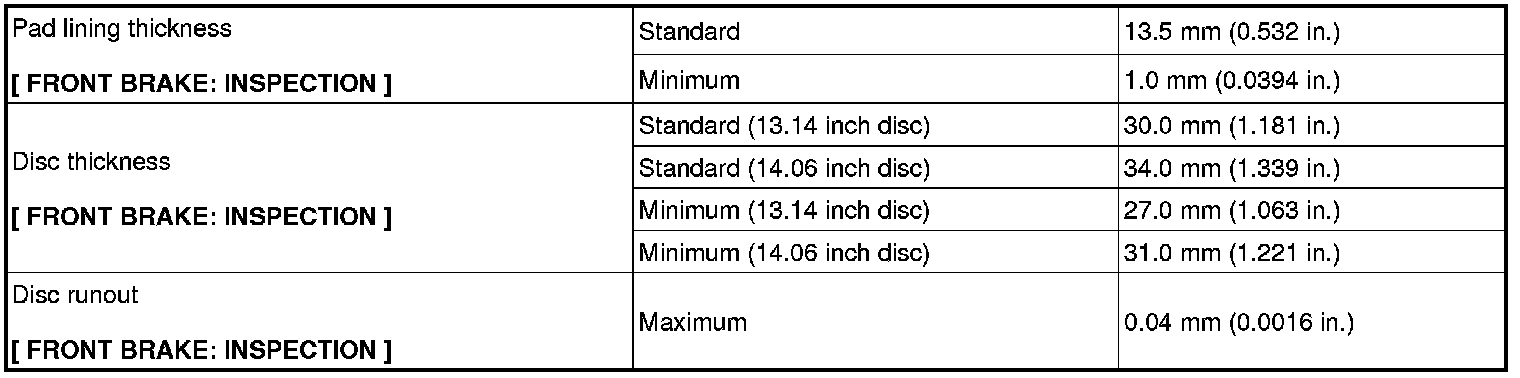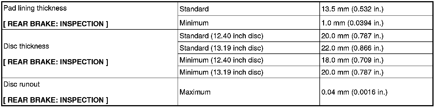 SERVICE SPECIFICATIONS: BRAKE: SERVICE DATA