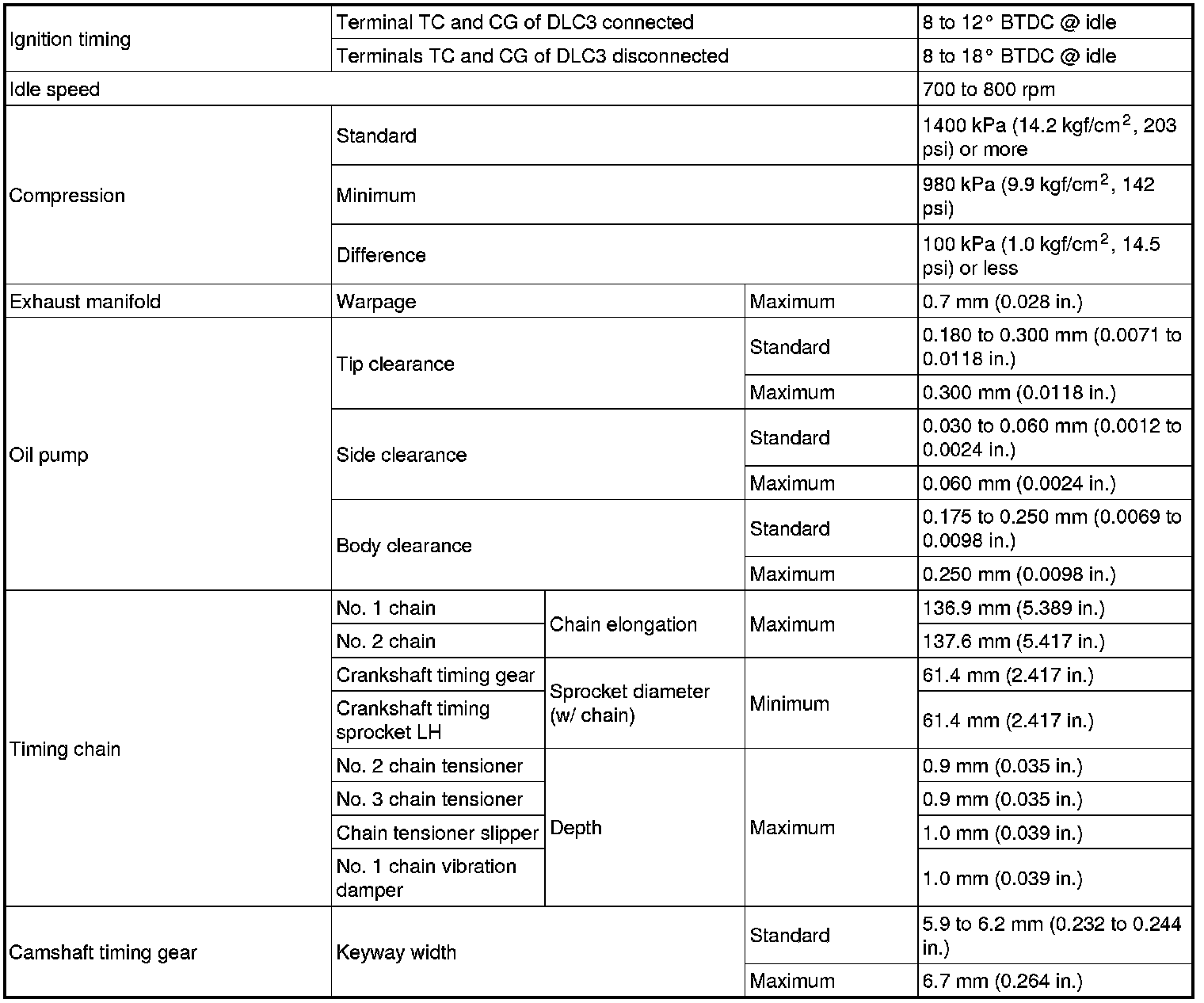 SERVICE SPECIFICATIONS: 1UR-FSE ENGINE MECHANICAL: SERVICE DATA