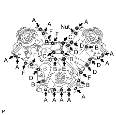 Second pass: Tighten 11 bolts in several steps in sequence 47 Nm (479 kgf-cm, 35 ft-lbf)