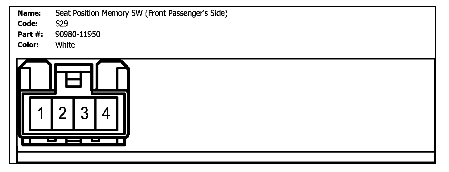 S29 (Seat Position Memory SW (Front Passenger's Side)):