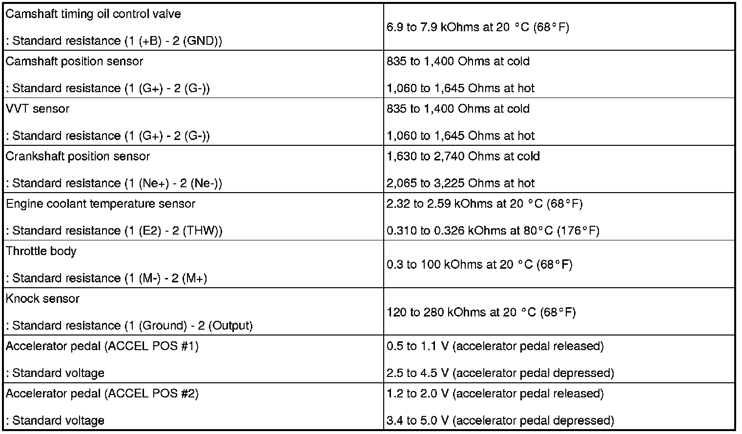 SERVICE SPECIFICATIONS: 3UZ-FE ENGINE CONTROL SYSTEM: SERVICE DATA