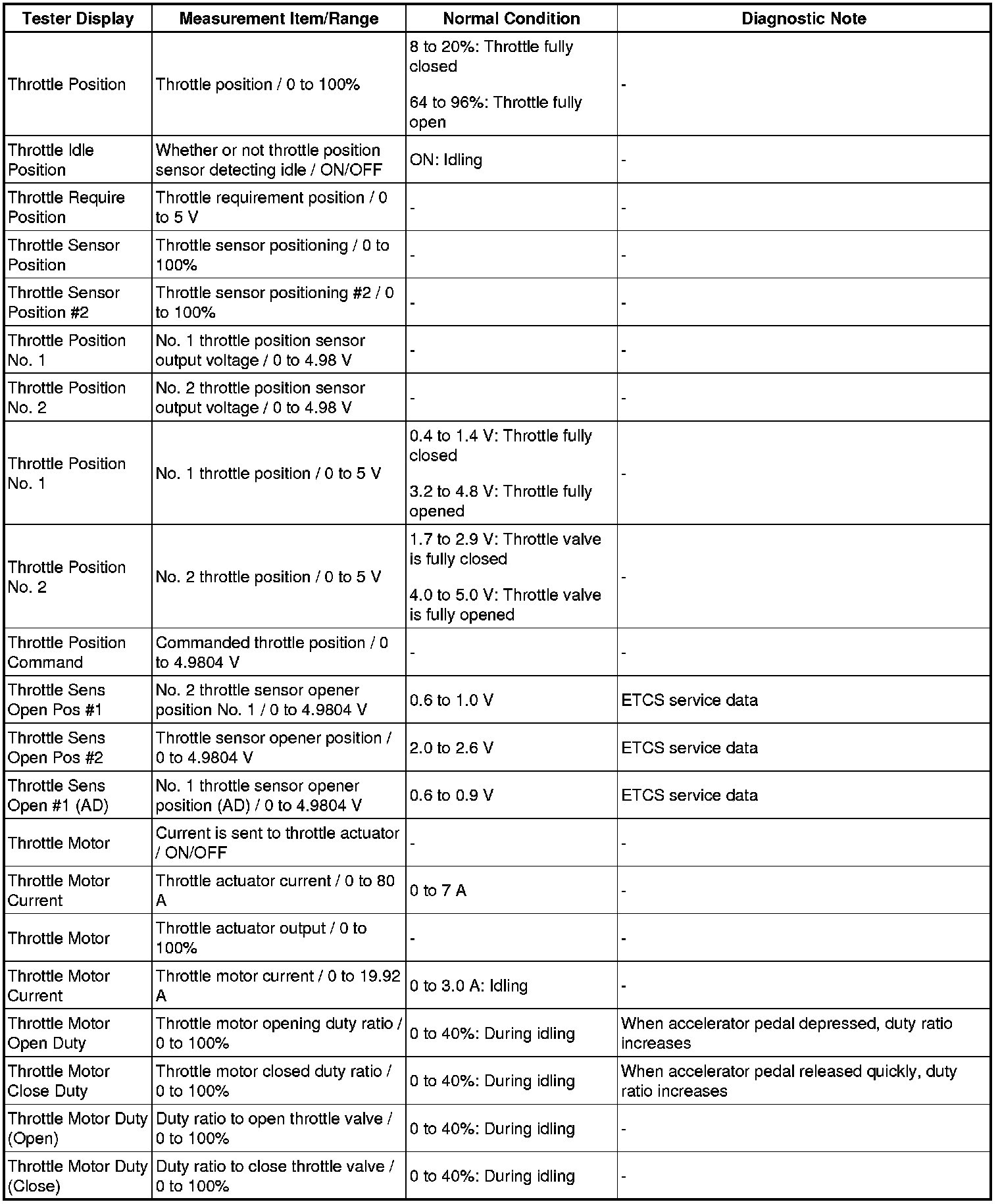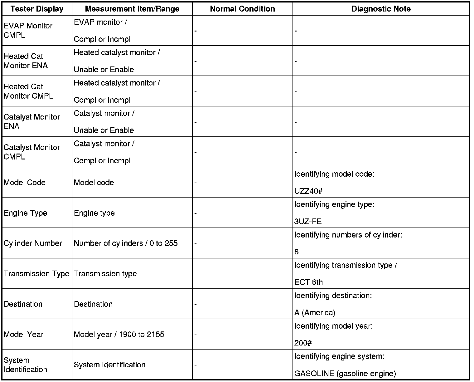 - Normal Condition: If no conditions are specifically stated for "idling", the shift lever is in the N or P position, and the A/C and all accessory switches are OFF.