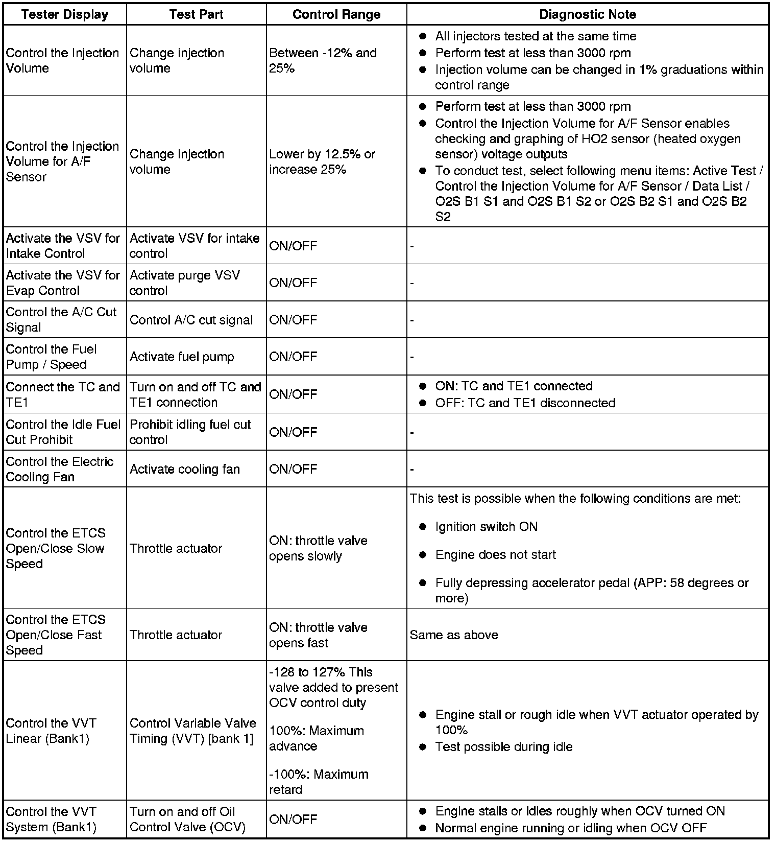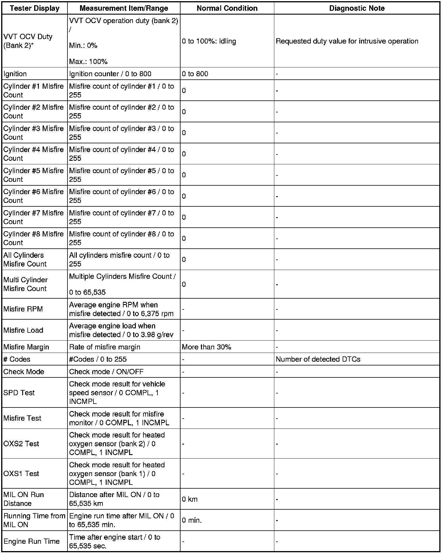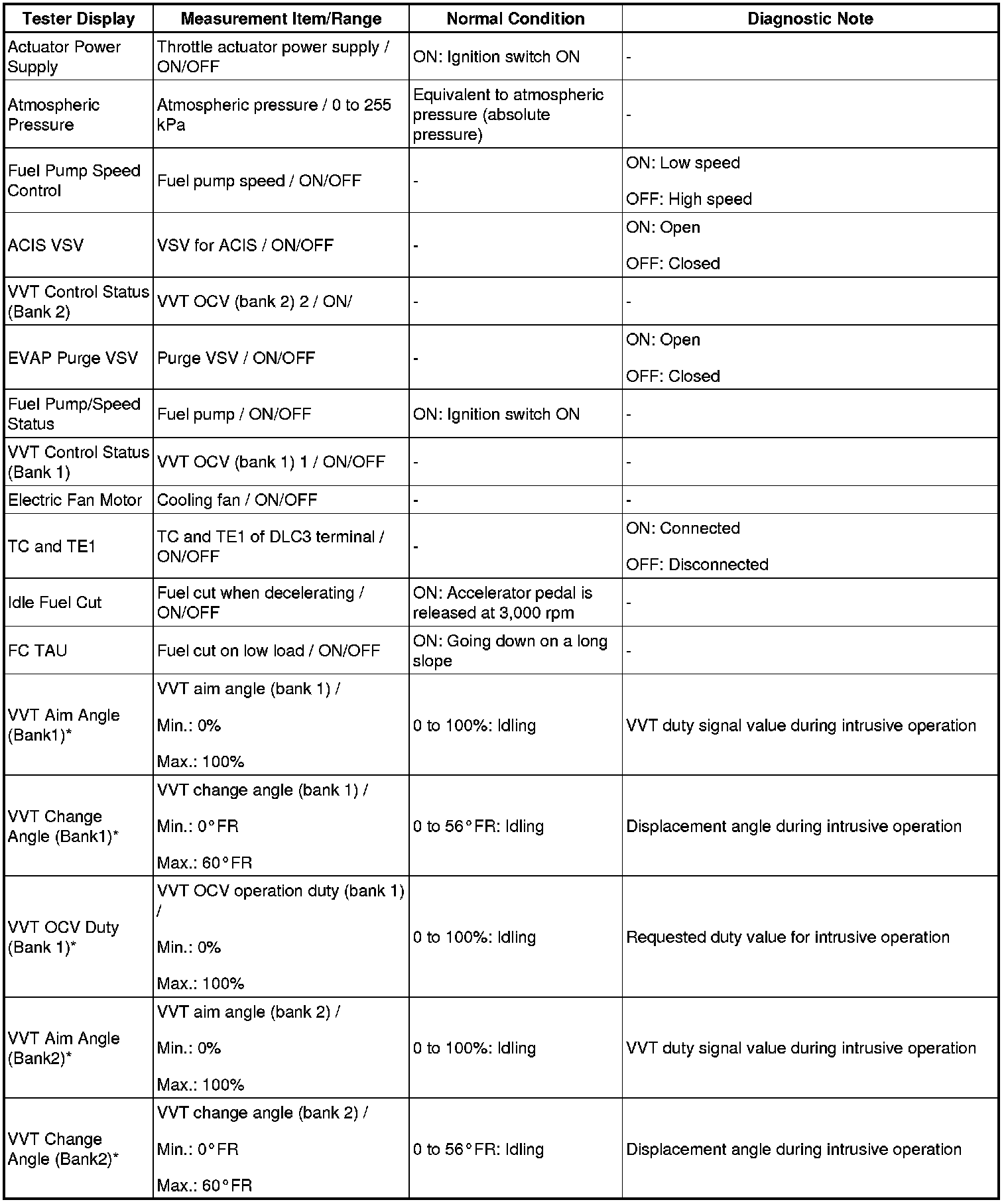 - *: Data List values are only displayed when performing the following Active Tests: Control the VVT Linear (Bank1), Control the VVT Linear (Bank2), Control the VVT Exhaust Linear (Bank1) and Control the VVT Exhaust Linear (Bank2). For other Active Tests, the Data List value will be 0.
