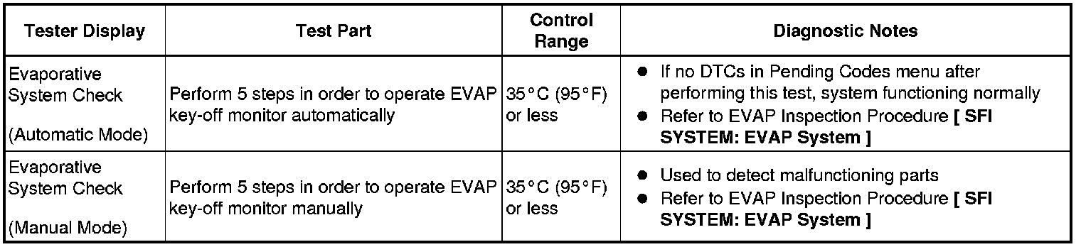 (e) Perform the System Check by referring to the table below.