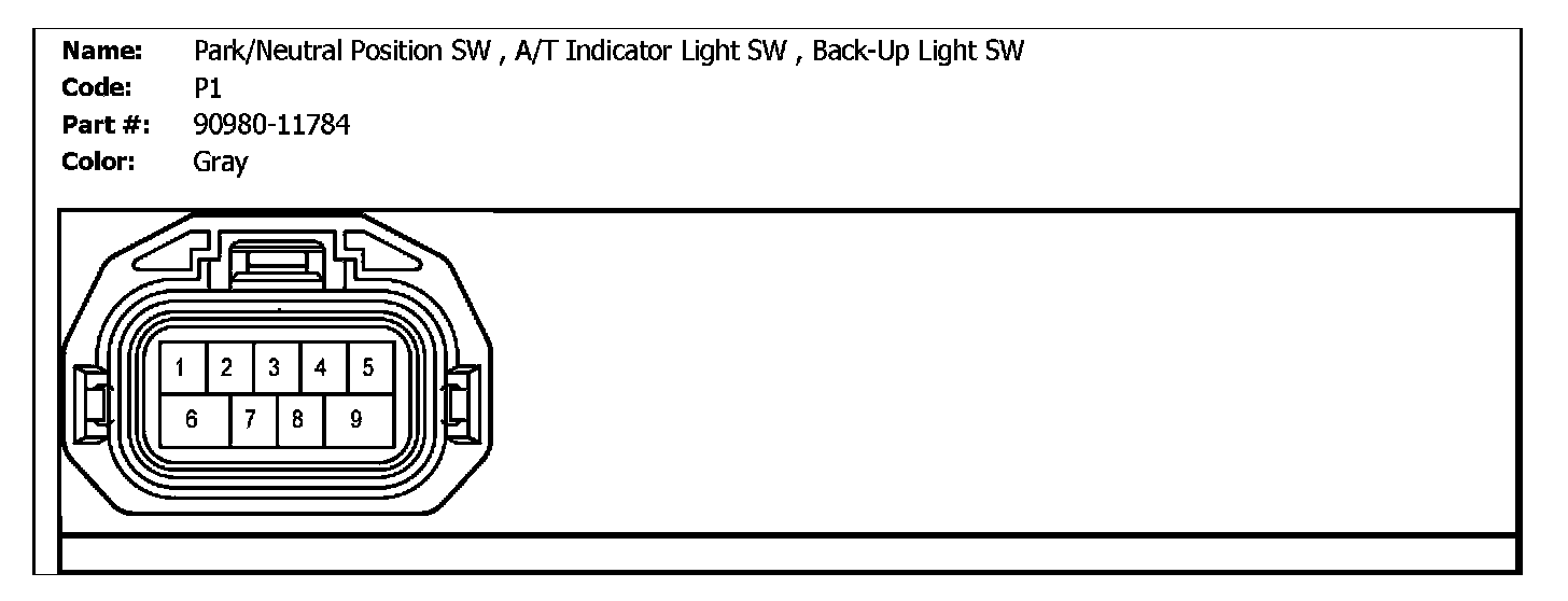 P1 (Park/Neutral Position SW, A/T Indicator Light SW, Back-Up Light SW):