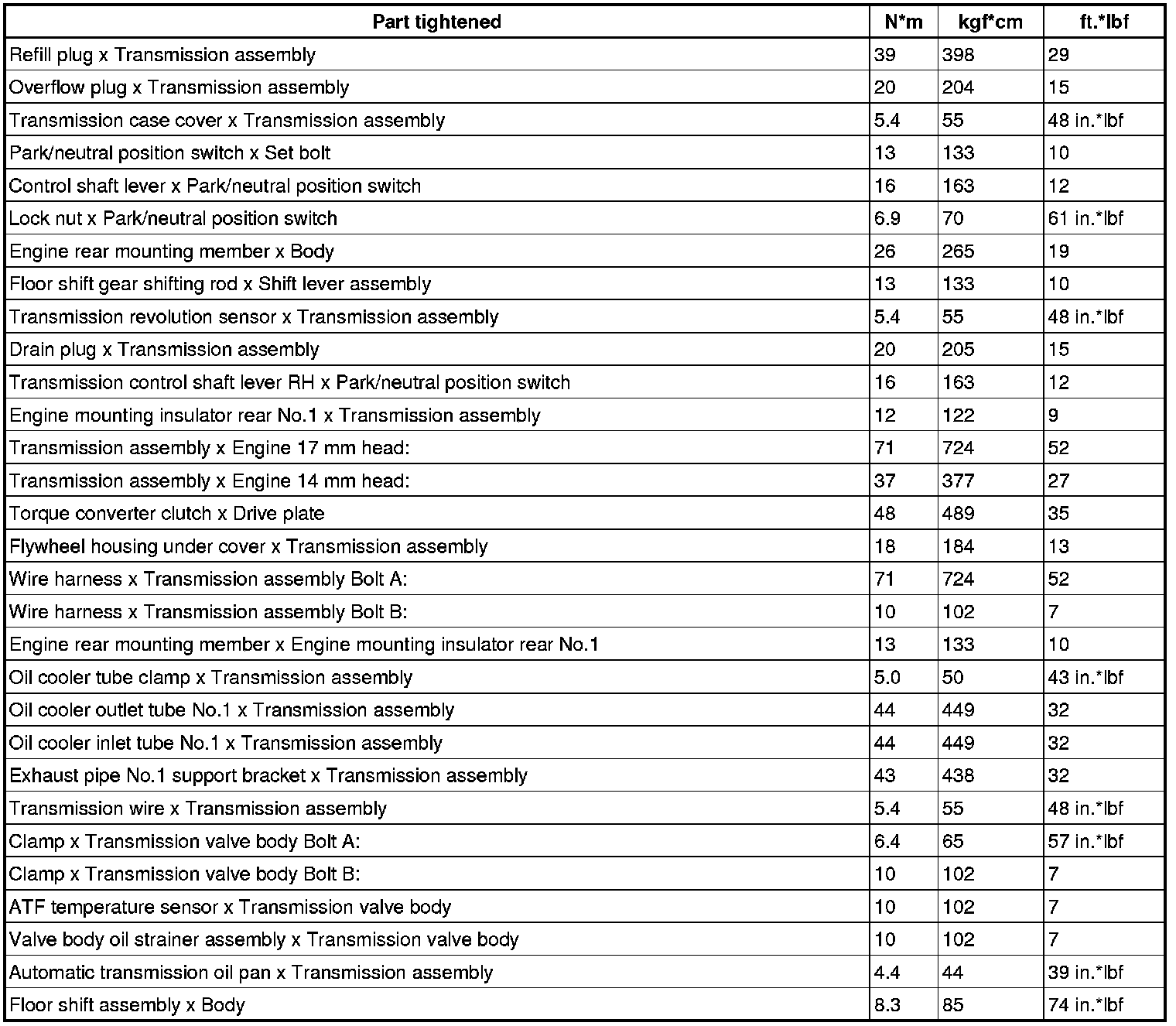 SERVICE SPECIFICATIONS: A761E AUTOMATIC TRANSMISSION: TORQUE SPECIFICATIONS