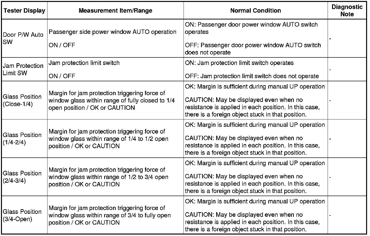 WINDSHIELD / WINDOWGLASS: POWER WINDOW CONTROL SYSTEM: DATA LIST / ACTIVE TEST