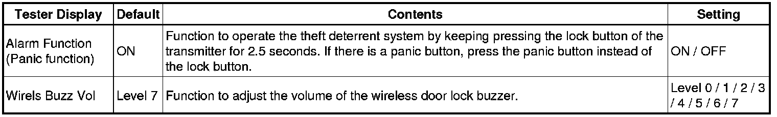 To return to the original condition, perform the procedures again. When the original condition is returned, the wireless door lock buzzer sounds once.