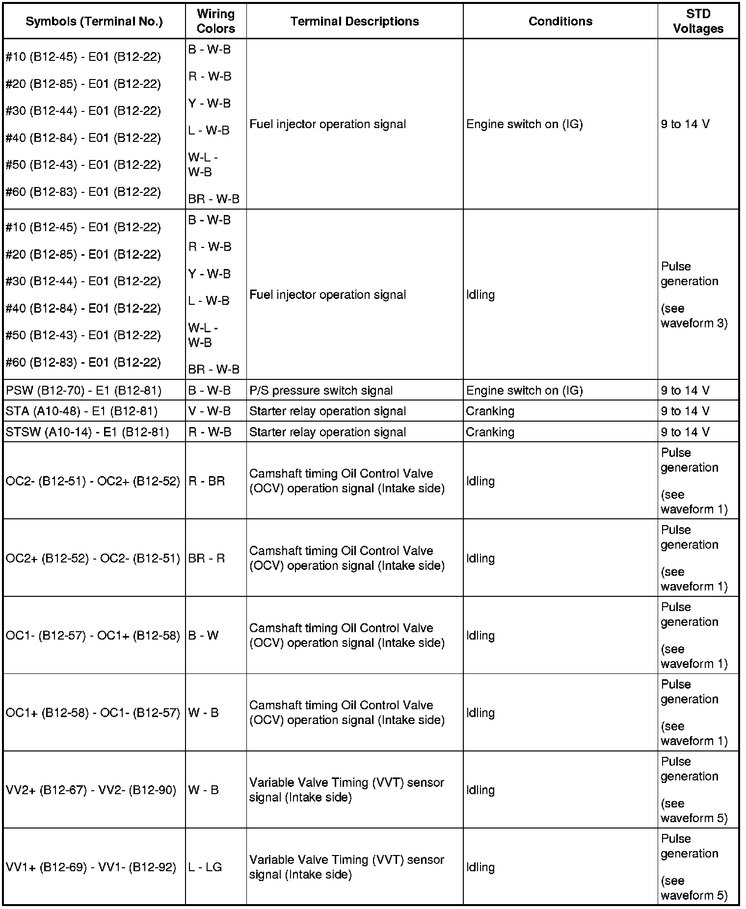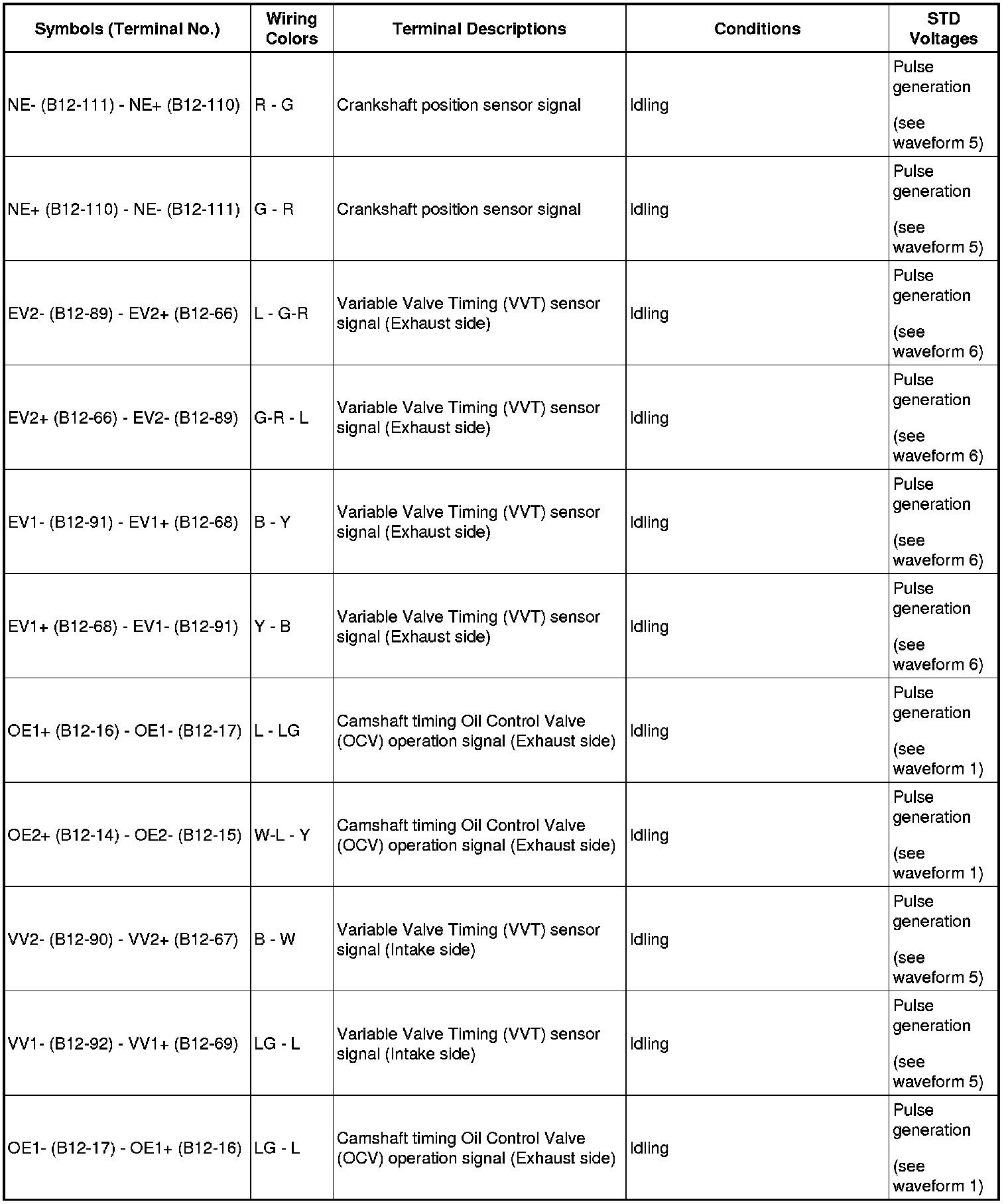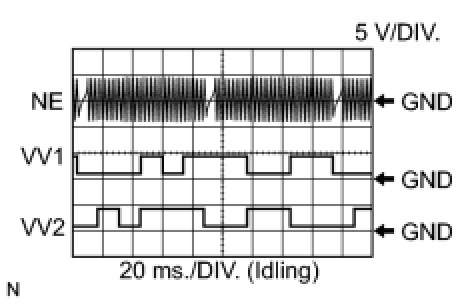 HINT: If the waveform is not similar to that shown in the illustration, check the waveform again after idling for 10 minutes or more.