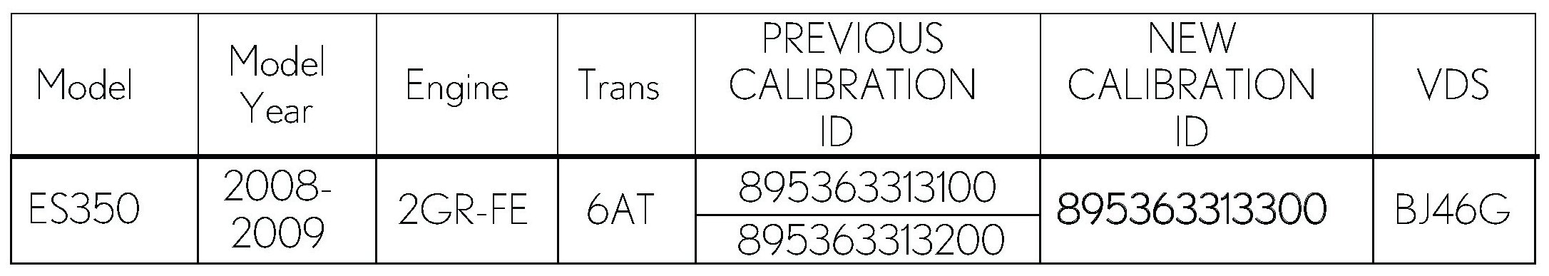 - Calibration ID(s) [Refer to the Calibration Identification Chart for the NEW CALIBRATION ID]