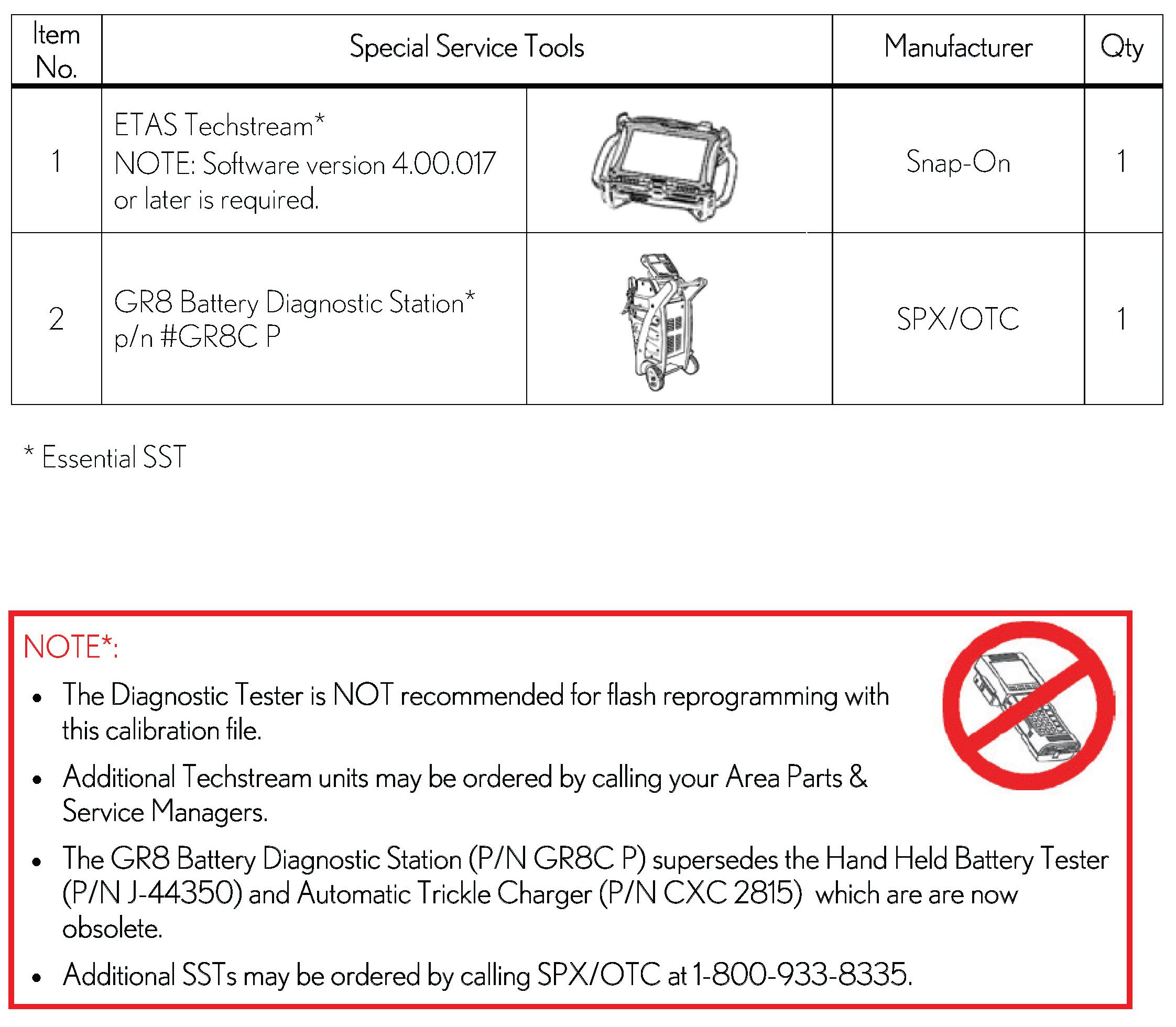 - For details on how to use the GR8 Battery Diagnostic Station, refer to the GR8 Battery Diagnostic Station Instruction Manual located on ETAS/TIS library > Tools > tools and equipment > GR8 Battery Diagnostic Station Instruction Manual.