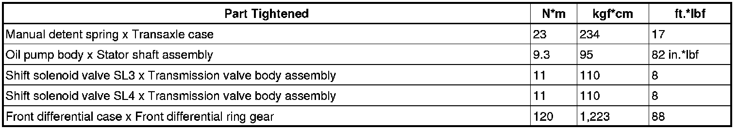 SERVICE SPECIFICATIONS: U660E AUTOMATIC TRANSAXLE: TORQUE SPECIFICATIONS