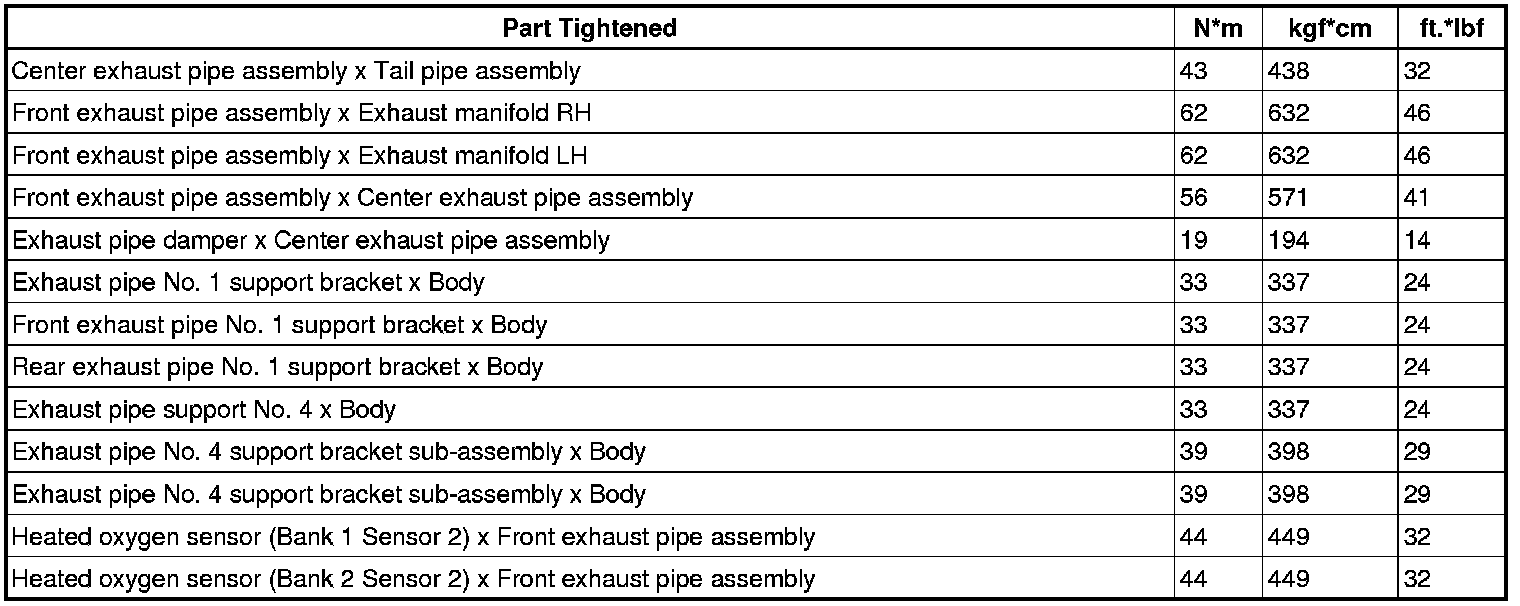 SERVICE SPECIFICATIONS: 2GR-FE EXHAUST: TORQUE SPECIFICATIONS