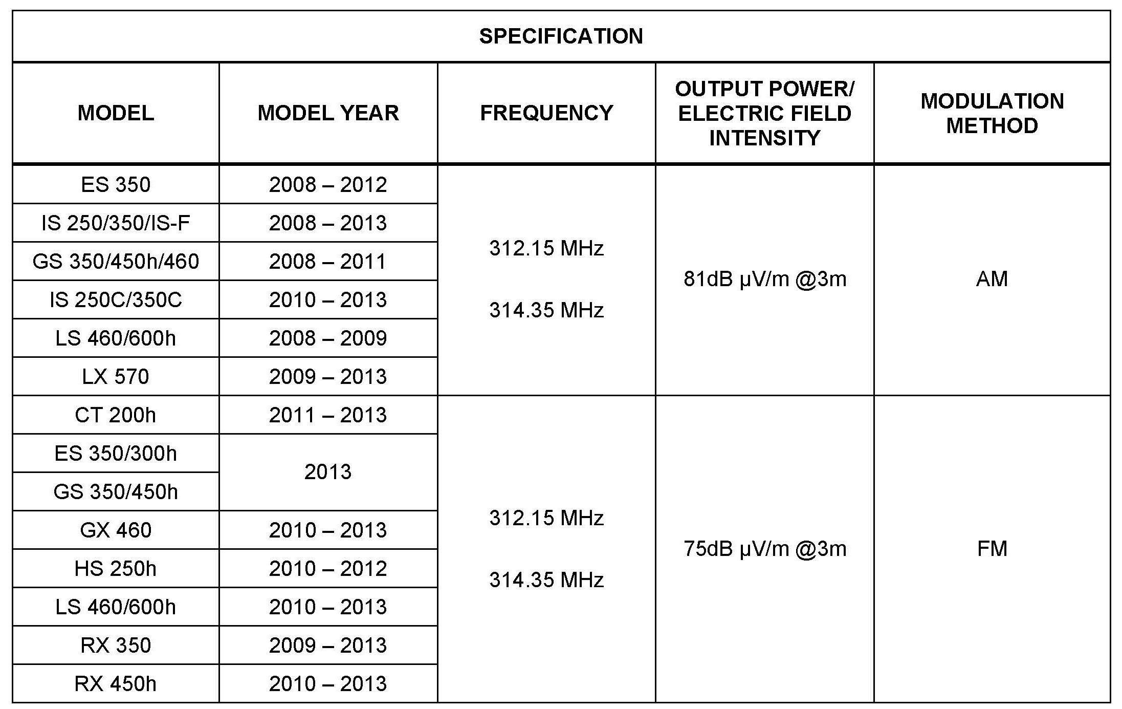 Some customers may inquire about the frequency and power output of the Smart Key/Smart Entry Systems used on various models. The Smart Key/Smart Entry systems conform to all applicable FCC rules and Industry Canada Radio Standards Specifications (RSS). This bulletin details the applicable specifications for these systems.