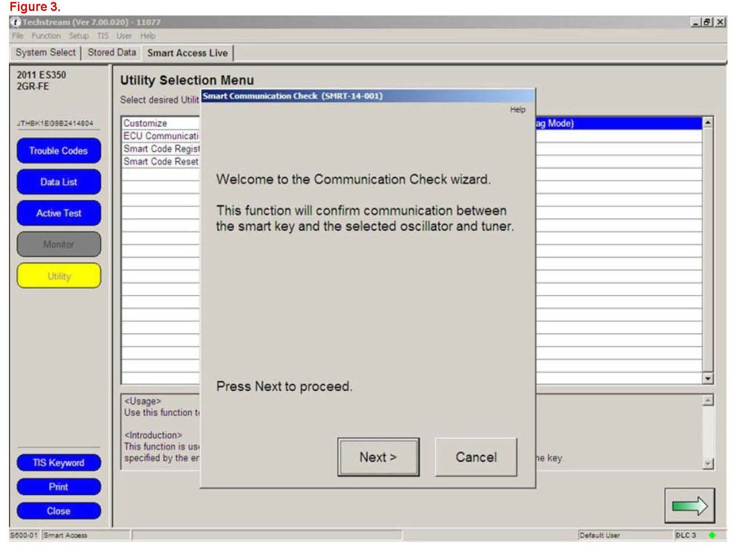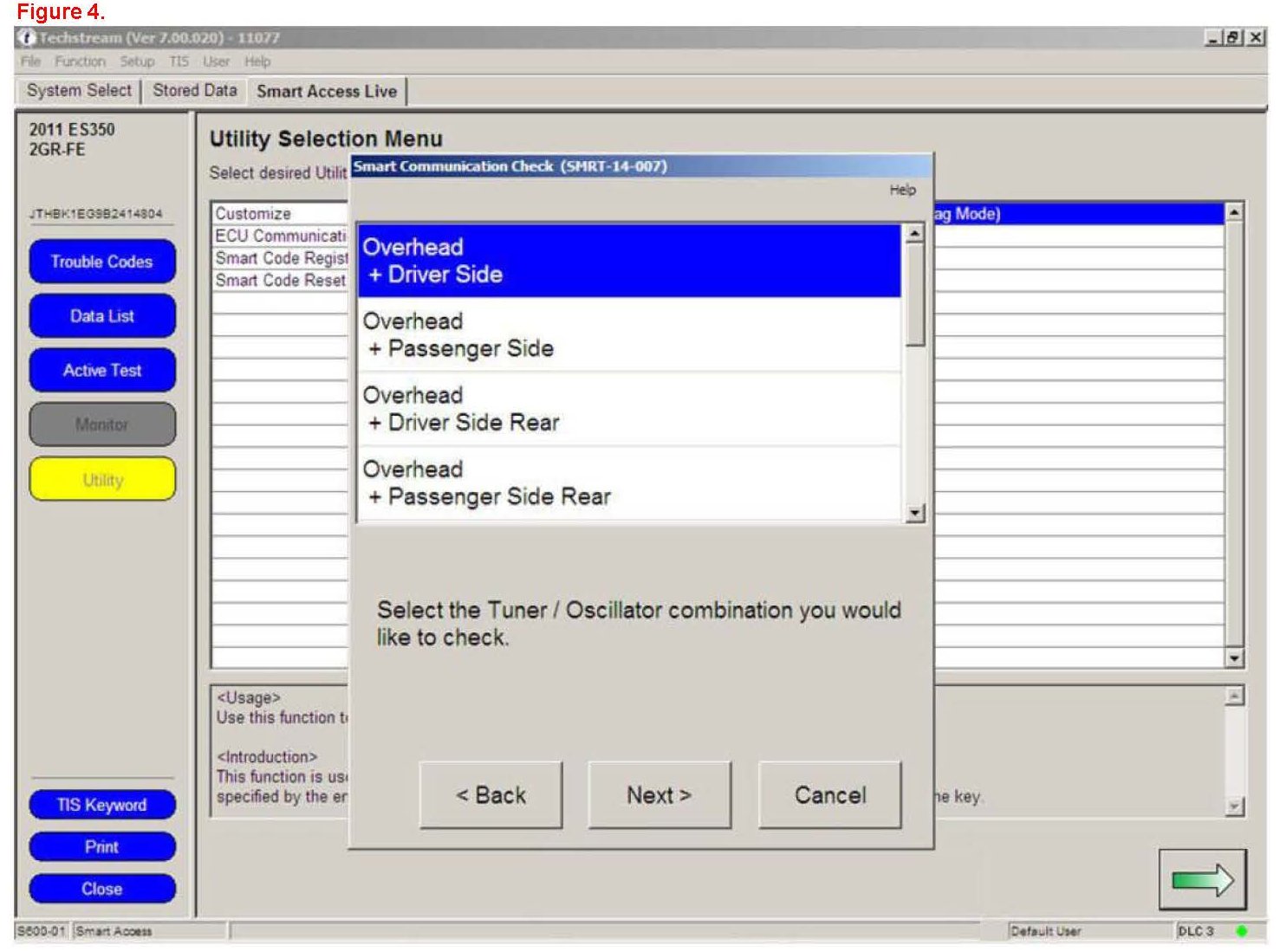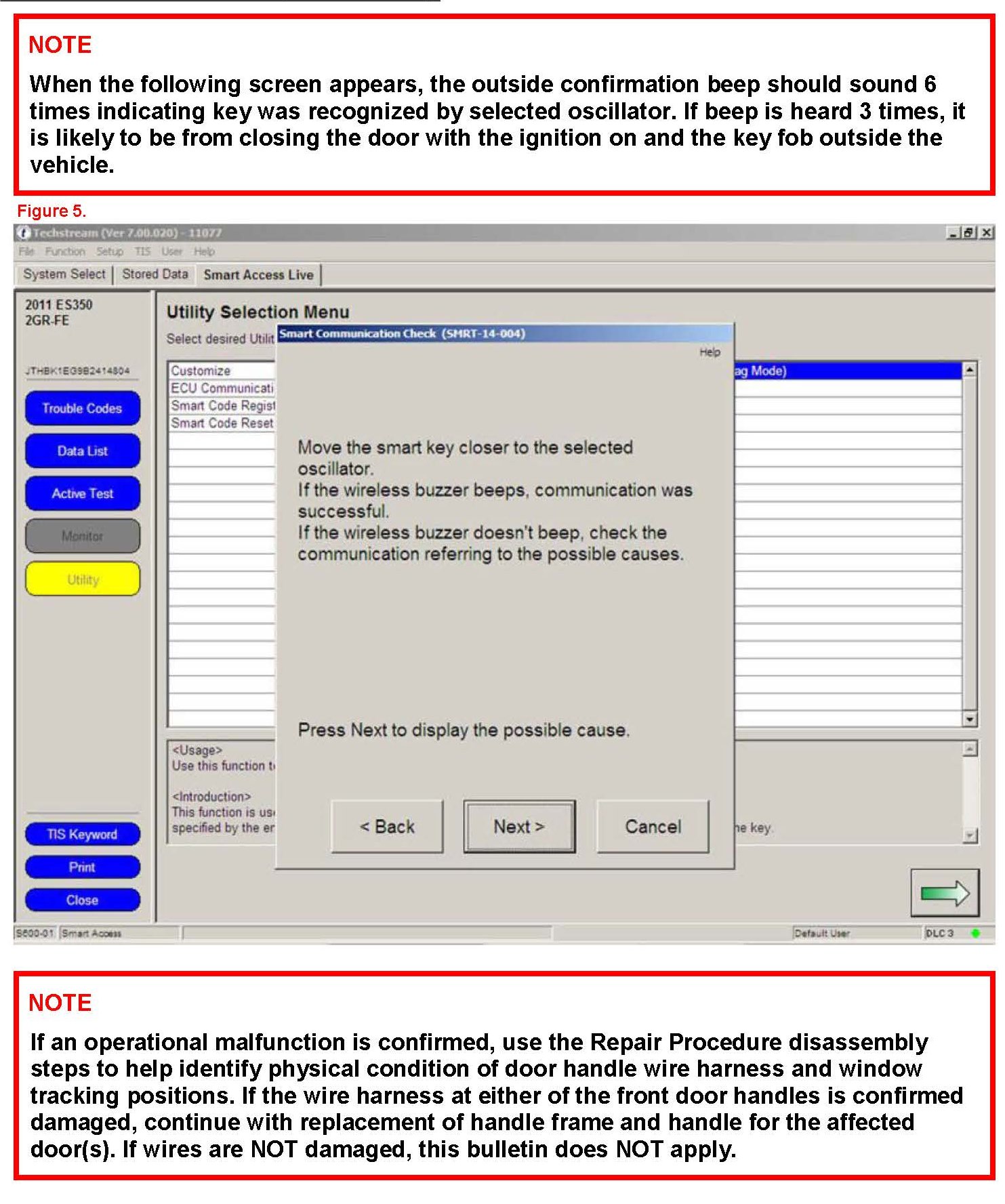 2. Once the specific malfunction is confirmed, use Techstream Smart Key Data List to review the corresponding signa from the left or right door as illustrated in Figure 1.