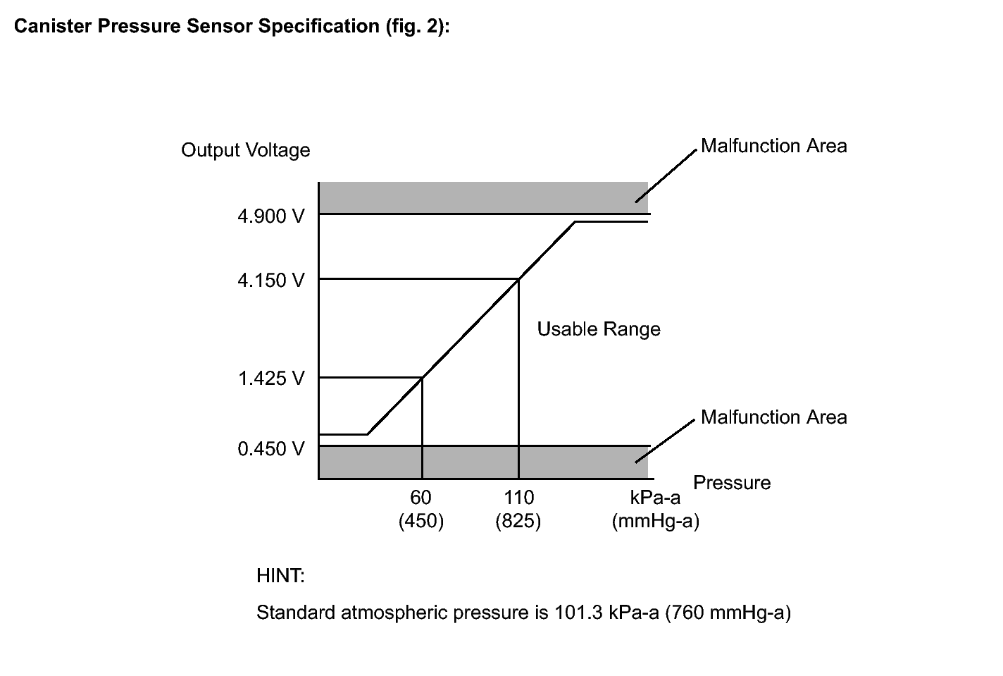 The vent valve is turned OFF (open) and the EVAP pressure is measured. If the variation in the pressure is less than 0.5 kPa-g (3.75 mmHg-g), the ECM interprets this as the purge VSV being stuck closed, and illuminates the MIL and sets DTC P0441 (2 trip detection logic).