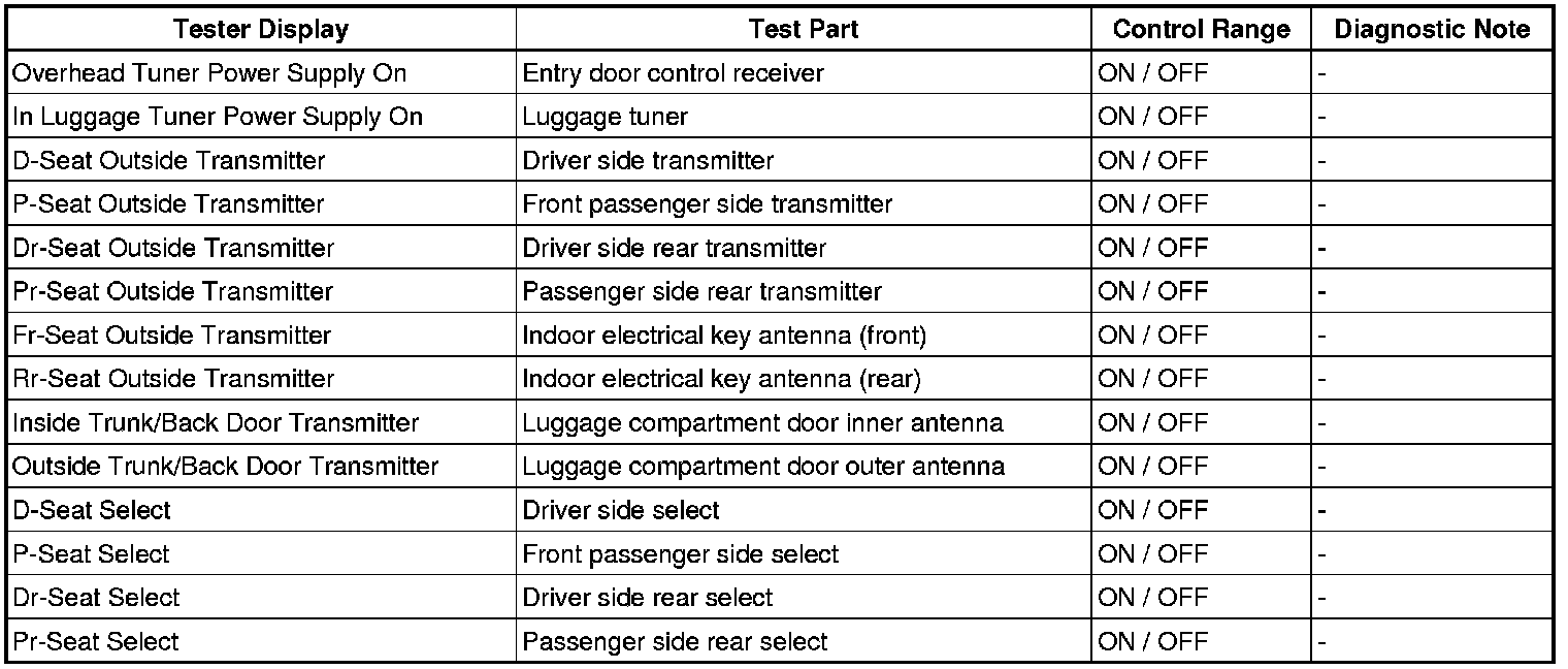 DOOR LOCK: SMART ACCESS SYSTEM WITH PUSH-BUTTON START: DATA LIST / ACTIVE TEST