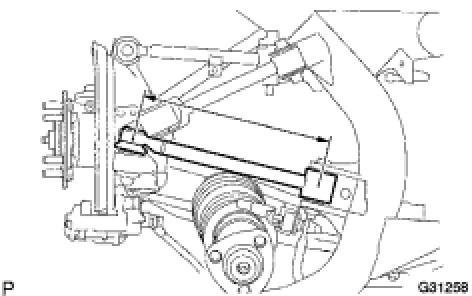 (1) Measure the distance between the centers of the installation bolt of the upper control arm assembly rear No.2 and the ball joint stud.