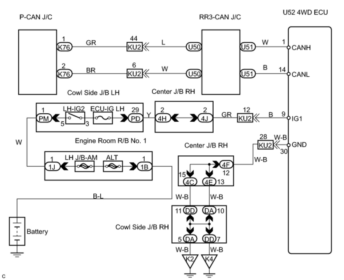 1. CHECK CAN BUS LINE FOR DISCONNECTION (4WD ECU SUB BUS LINE)