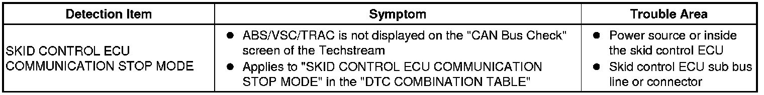 CAN COMMUNICATION: CAN COMMUNICATION SYSTEM: Skid Control ECU Communication Stop Mode