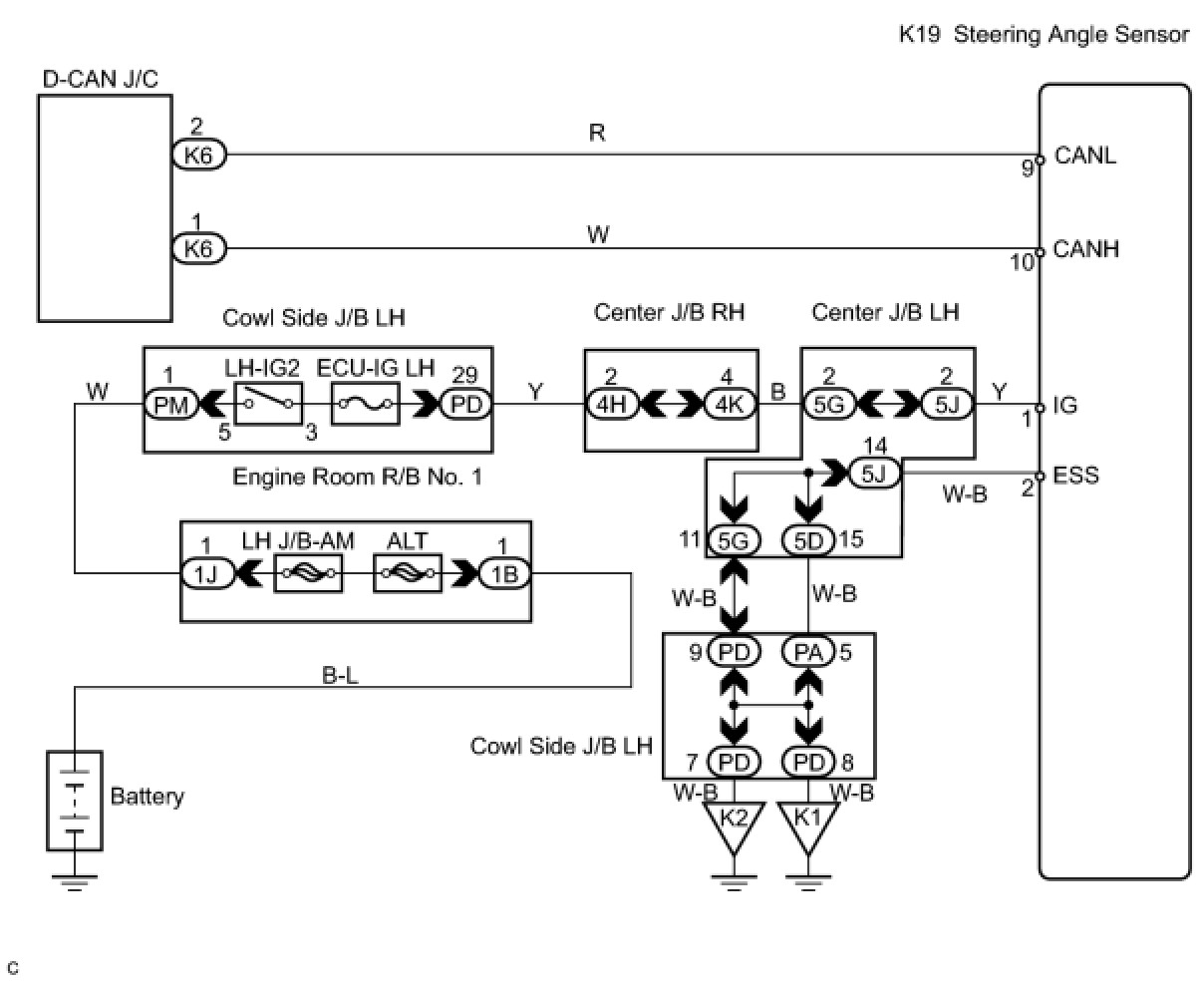 (b) Disconnect the steering angle sensor connector (K19).