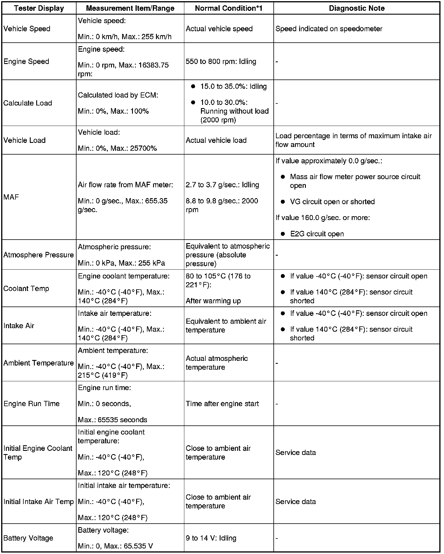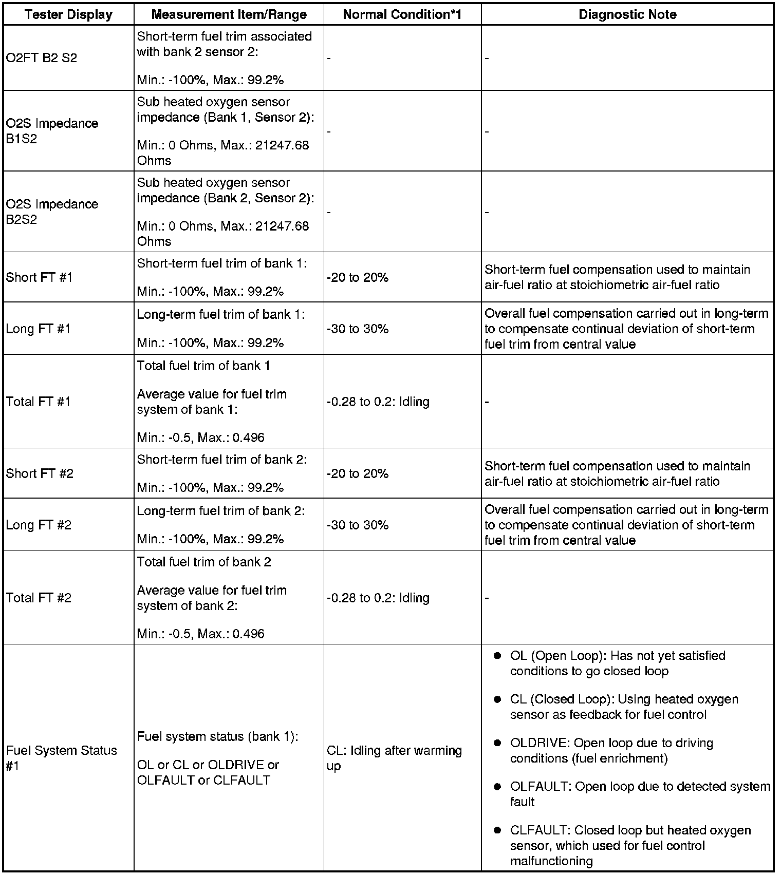 - *1: If no idling conditions are specified, the transmission gear selector lever should be in the P or N position, and the A/C switch and all accessory switches should be off.