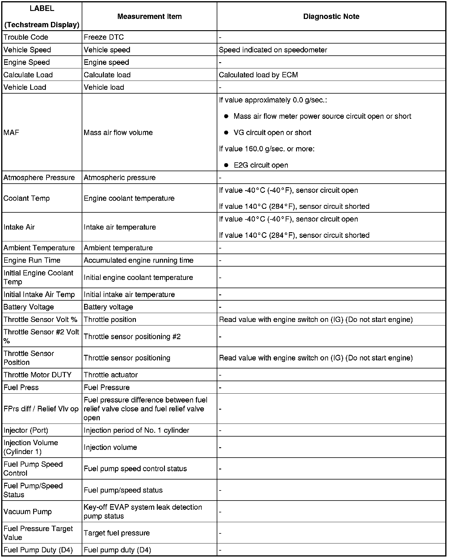 Home >> Lexus >> 2009 >> GS 350 AWD V6-3.5L (2GR-FSE) >> Repair and Diagnosis >> Powertrain Management >> Computers and Control Systems >> Testing and Inspection >> Scan Tool Testing and Procedures >> Freeze Frame Data