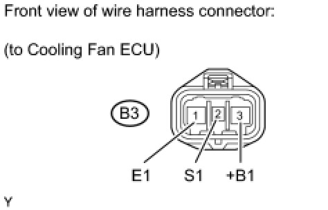 - If the output current is abnormal even when the input signal is normal, there is a malfunction in the cooling fan ECU (S1), cooling fan motor or power source circuit.