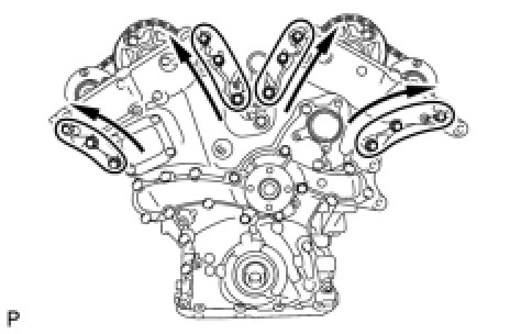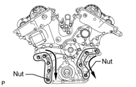 Temporarily tighten the timing chain cover with the 25 bolts and 2 nuts.
