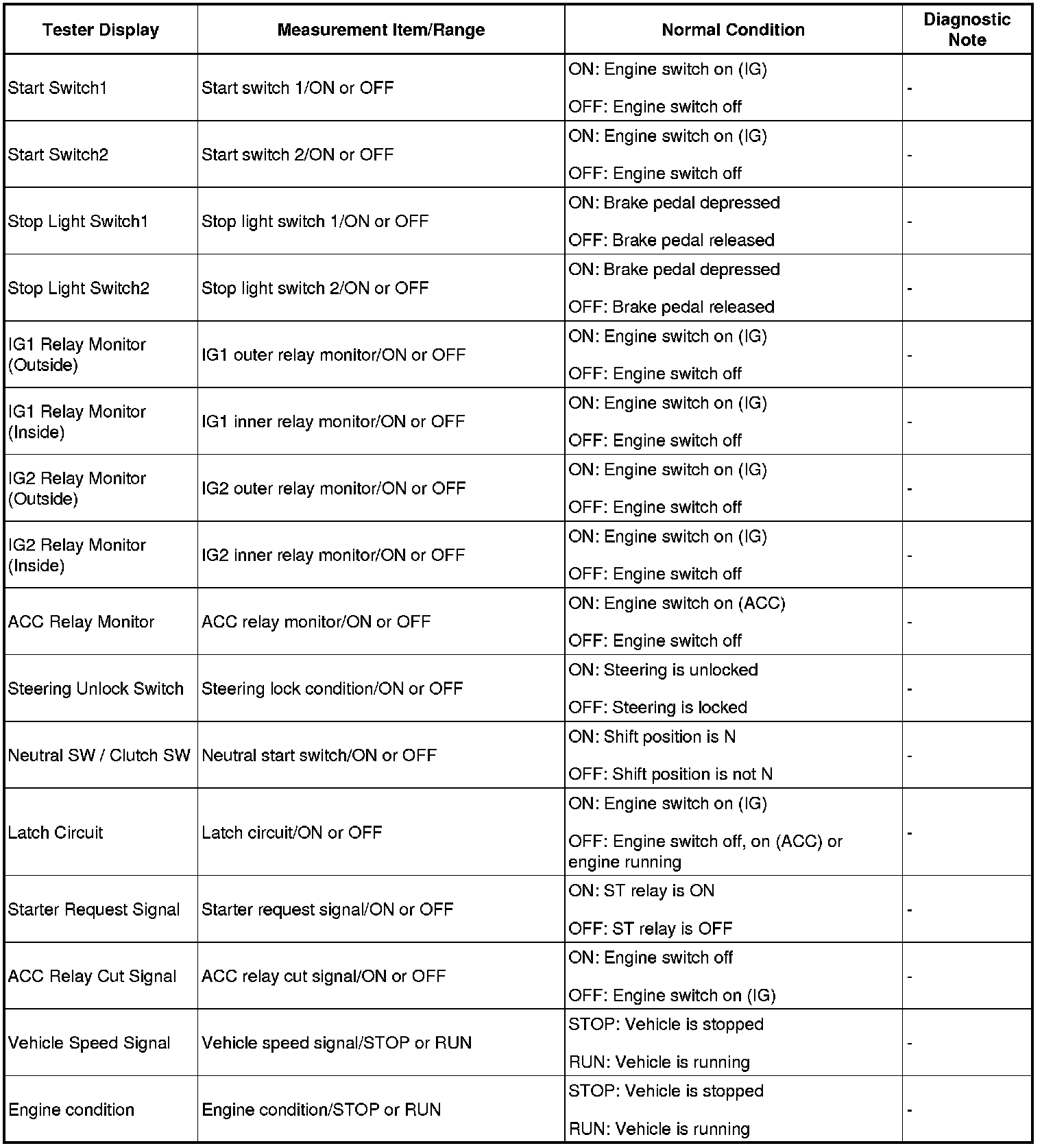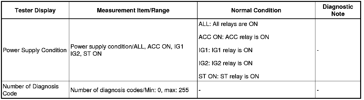 HINT: Using Techstream's DATA LIST allows switch, sensor, actuator and other item values to be read without removing any parts. Reading the DATA LIST early in troubleshooting is one way to save time.