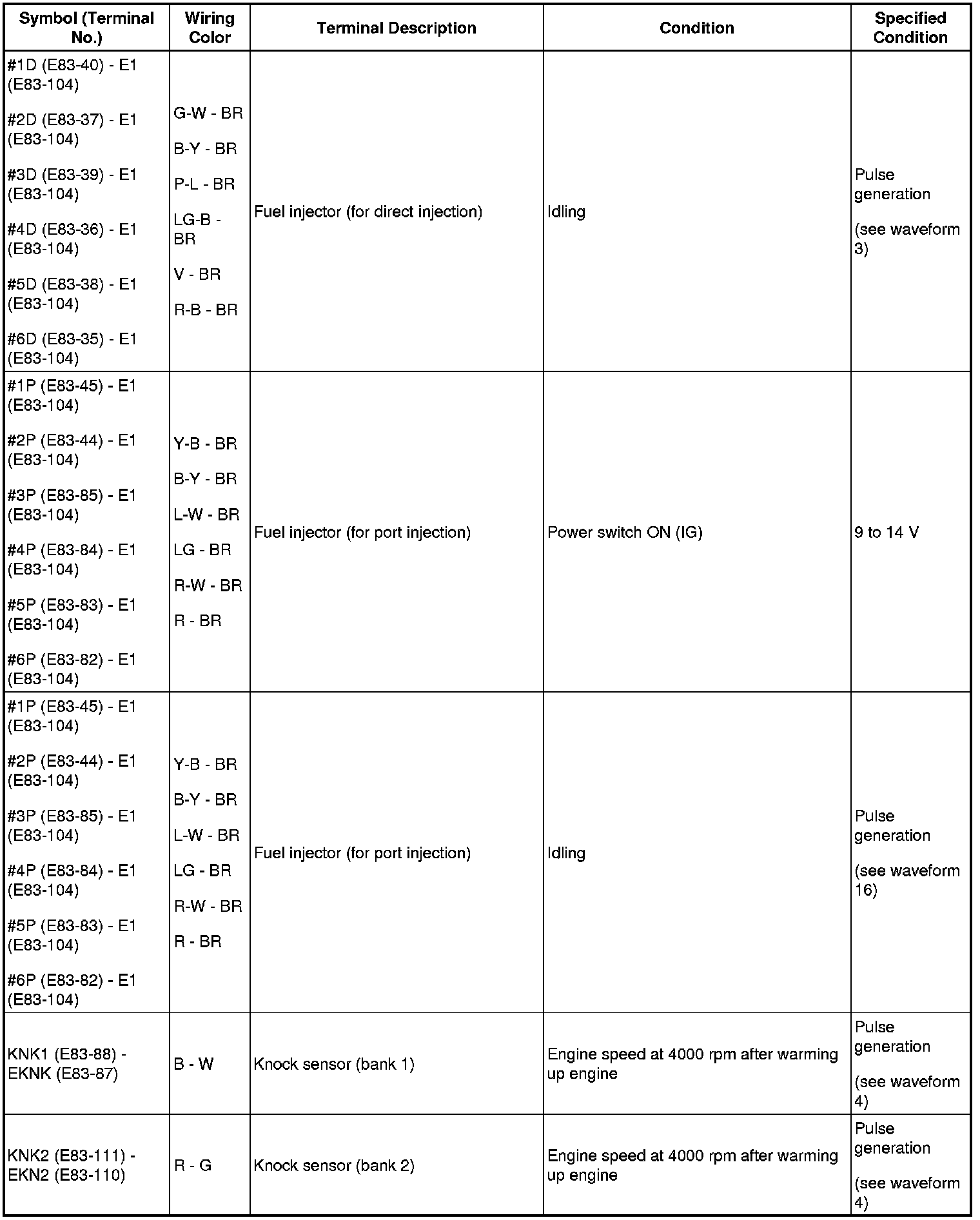 HINT: If the waveform is not similar to the illustration, check the waveform again after idling for 10 minutes or more.