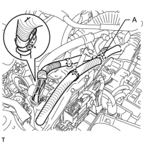 (e) Attach the side of the wire harness clamp labeled A to the wire harness.