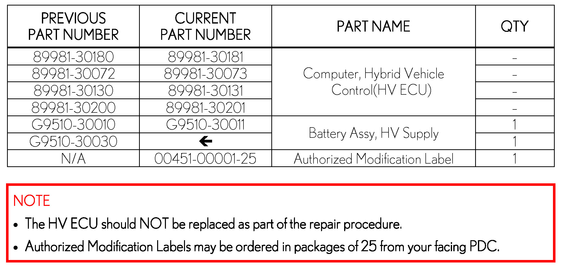 If the HV ECU already contains the latest calibration ID, this TSB does NOT apply.