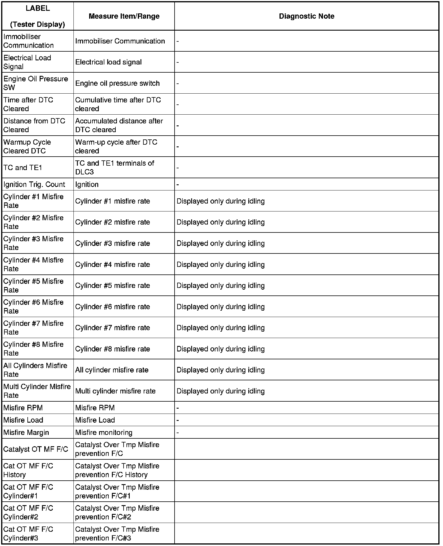 1UR-FSE ENGINE CONTROL SYSTEM: SFI SYSTEM: FREEZE FRAME DATA