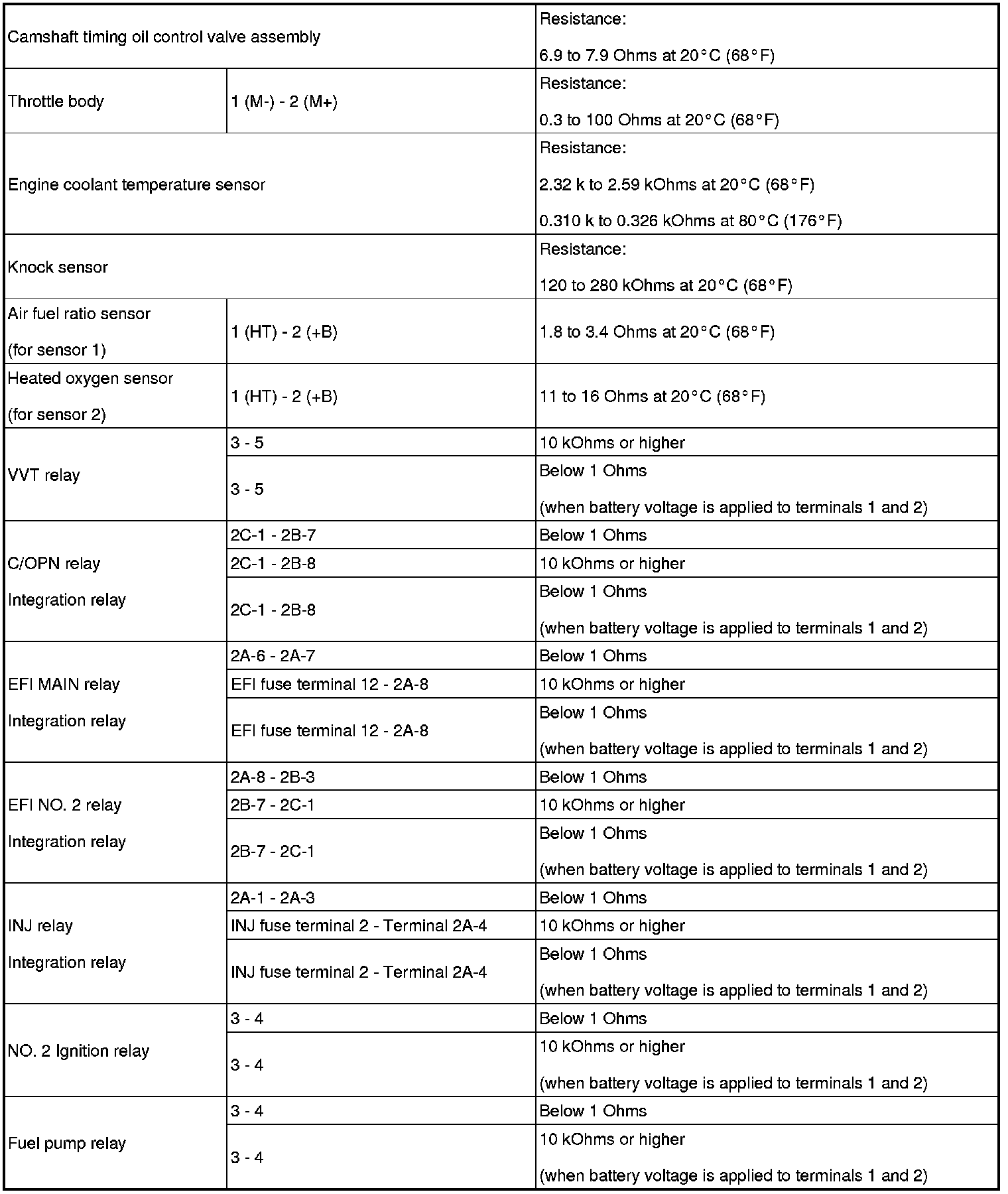 SERVICE SPECIFICATIONS: 1UR-FSE ENGINE CONTROL SYSTEM: SERVICE DATA