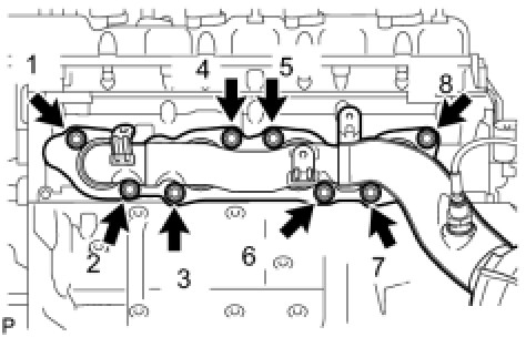 (1) Mark each cylinder head bolt head with paint as shown in the illustration.