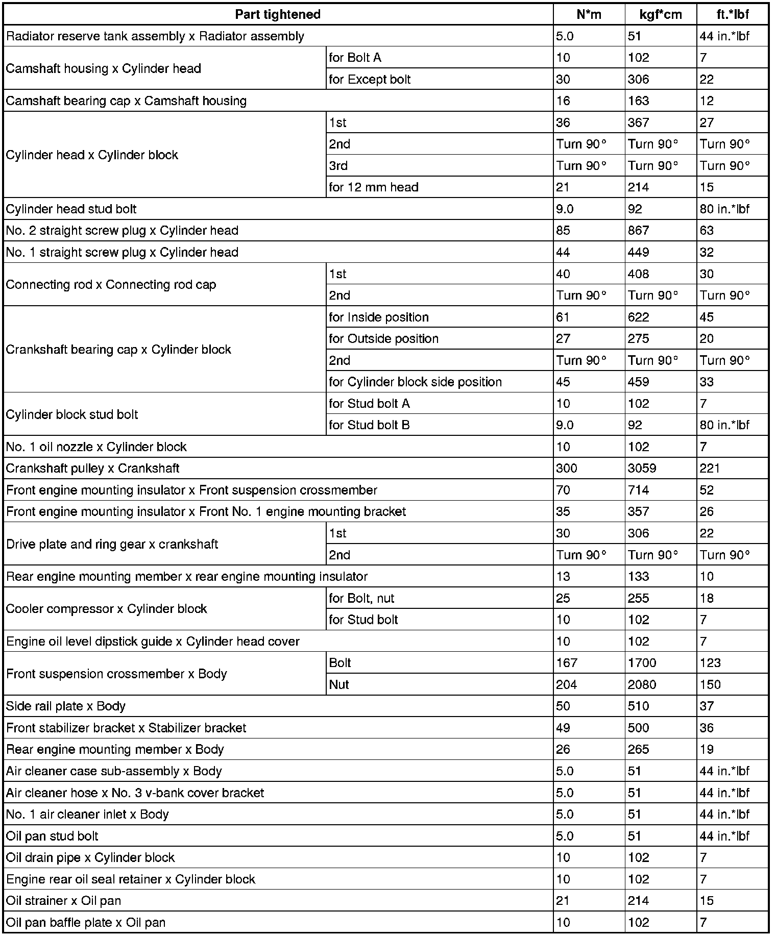 SERVICE SPECIFICATIONS: 1UR-FSE ENGINE MECHANICAL: TORQUE SPECIFICATIONS
