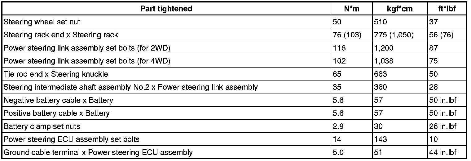 : TORQUE SPECIFICATIONS