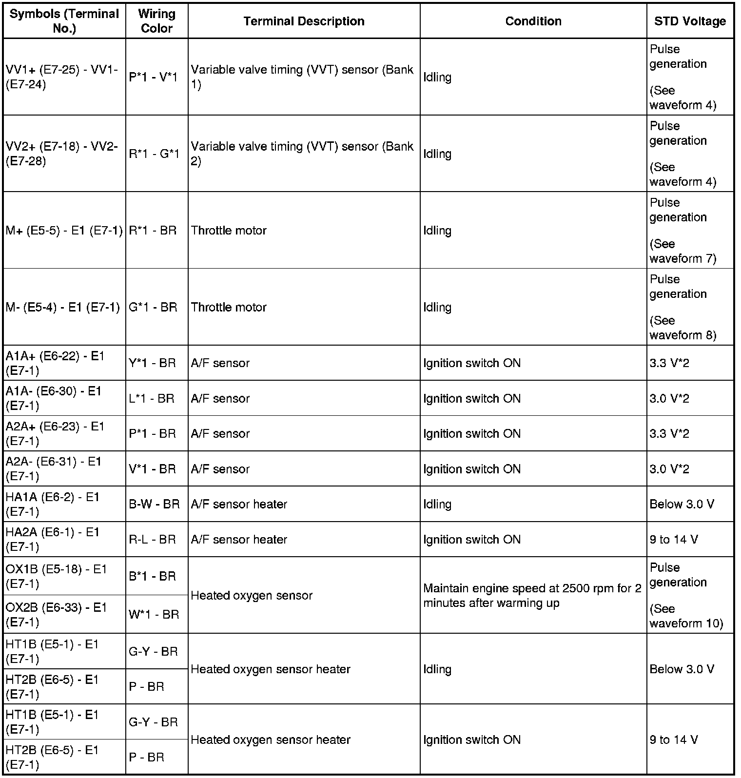 - The waveforms and amplitudes displayed differ slightly depending on the vehicle.