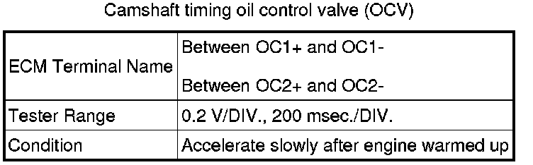 HINT: In the Data List, the items VVT OCV Duty B1 and B2 show the duty ratio of voltage flowing to the OCV (see illustration).