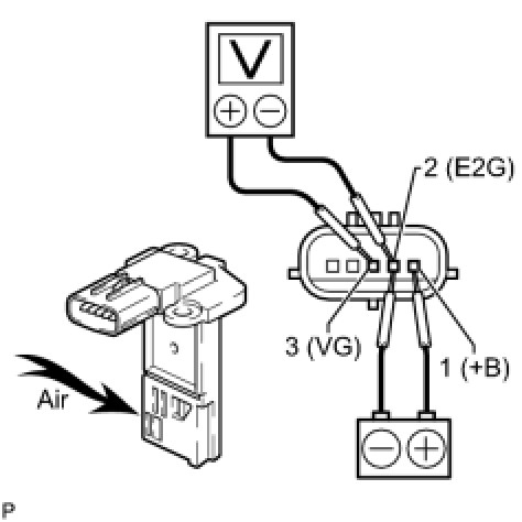 (3) Blow air into the air flow meter, and check if the voltage fluctuates.