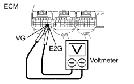 (2) Connect the positive tester probe of the voltmeter to terminal VG of the ECM and the negative tester probe of the voltmeter to terminal E2G of the ECM.
