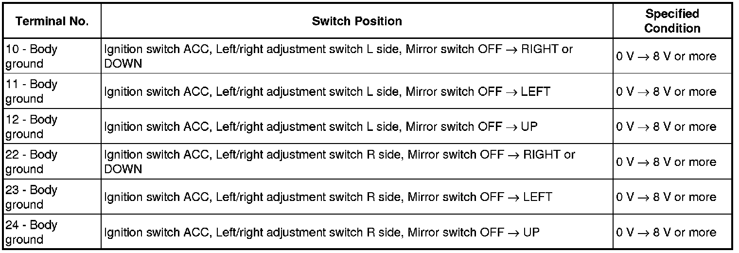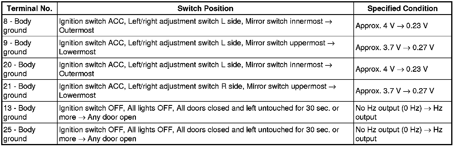 If the result is not as specified, replace the mirror assembly or the multiplex control may malfunction.