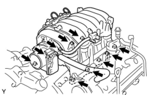 Install and uniformly tighten the 6 bolts and 4 nuts in several steps.